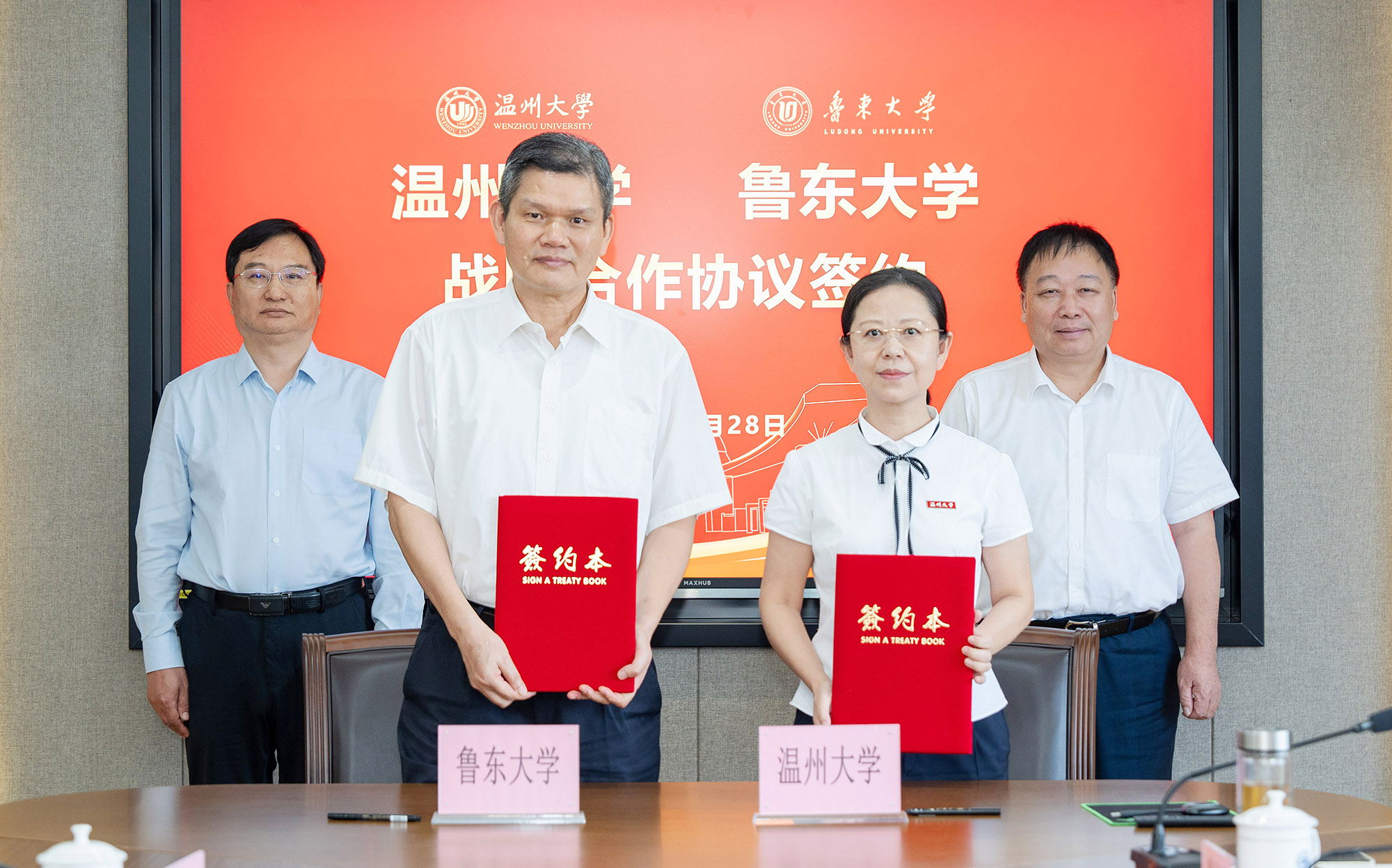 2025年9月27日至29日,我校党委副书记、校长李合亮教授,党委常委、副校长钱国旗教授等赴温州大学调研并签署战略合作协议。温州大学党委副书记、校长赵敏,党委委员、副校长刘玉侠出席活动。