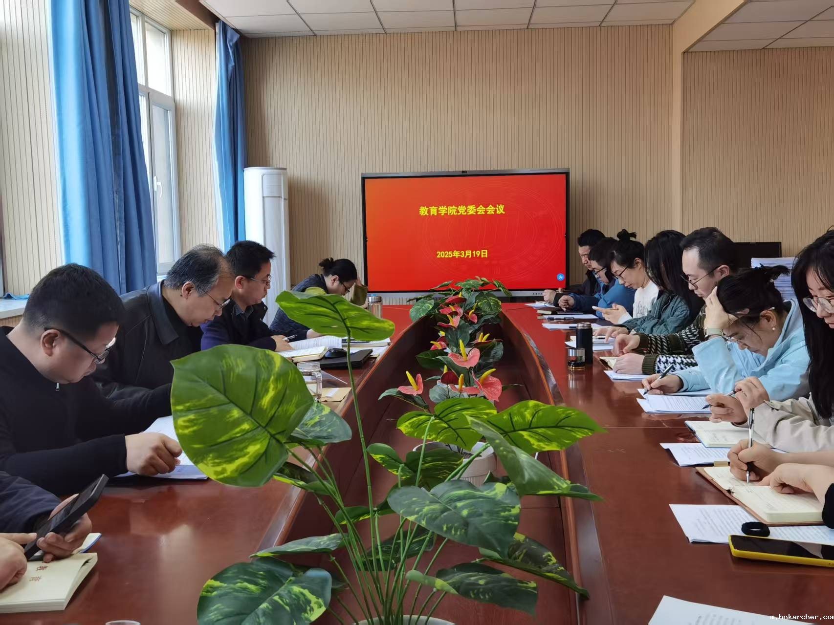 2025年3月19日,教育学院召开党委扩大会议。深入学习和贯彻全国两会精神,传达学习上级关于在全党开展深入贯彻中央八项规定精神学习教育的通知精神和学校的工作部署,启动部署教育学院深入贯彻中央八项规定精神学习教育工作。会议由学院党委书记主持,党委班子成员、党支部书记参加会议。