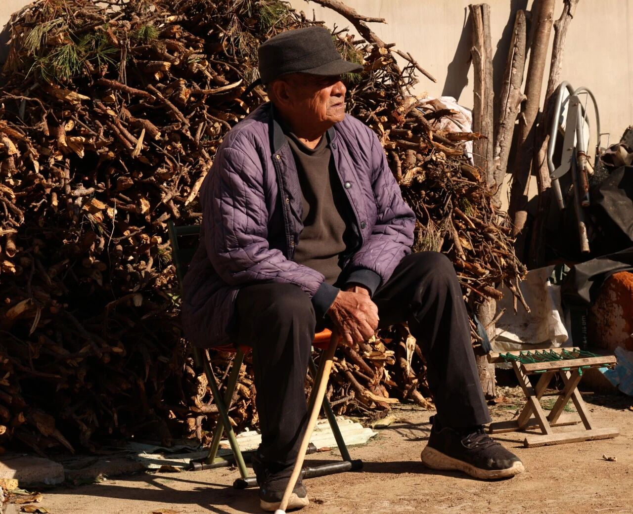 阳光打在石墙上,背光而坐的仨人往石台上一坐,影子都显得松快。爷爷们刚干完农活,歇息片刻时的话不必多,坐在粗粝的石台上晒着太阳闲扯两句,感叹天气晴朗之迹,日子便从这一言一句中不慌不忙的过去。他们坐的不只是台子,还是生活了大半辈子的熟稔,连沉默中都带着老辈子才懂的松弛。