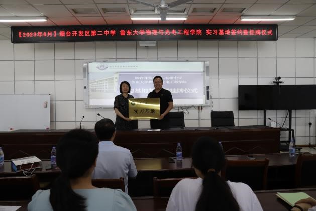 在烟台七中,于永海校长、杨晋杰副校长、綦晨梅副校长、孙鹏主任、孙连海副主任等出席了仪式。院长马晓光教授对烟台七中在师范认证等方面的支持表示了感谢。双方就进一步深入推进实习合作及烟台市物理学会的工作推进达成了一致意见。