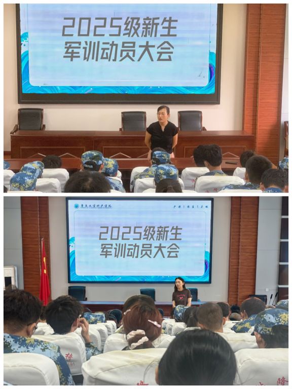 军训是大学生活的第一堂课,也是一次难得的人生磨砺。军训指导员王婷婷老师通过军训工作指南向到场的同学们详细讲解了本次军训的具体要求,要求同学们要敢于直面挑战,把握锻炼的机会,在汗水中磨砺坚毅,在训练中培养担当。希望同学们能够以军训为起点,学会自律与团结,勇于突破自我,真正将军训的精神转化为今后学习和生活的动力,展现出水产学子昂扬向。