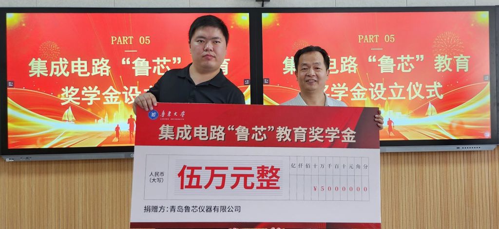 集成电路“鲁芯”教育奖学金由集成电路学院与青岛鲁芯仪器有限公司共同设立。青岛鲁芯仪器有限公司捐资5万元,在未来3年每年评选出5名优秀本科生和研究生获得者,每生奖励3000元。