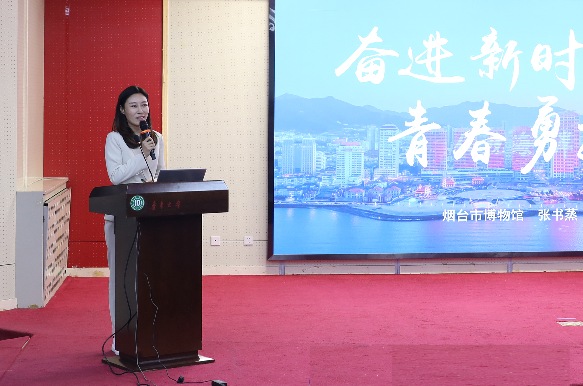 全国红色旅游五好讲解员、烟台市博物馆胶东革命纪念馆张书蒸以《奋进新时代青春勇担当》为题,以我国完全自主研制的“蓝鲸一号”海上钻井平台等为例,展现了烟台青年在科技创新方面的青春担当,号召青年大学生为国家的科技进步和经济发展贡献自己的智慧和力量。